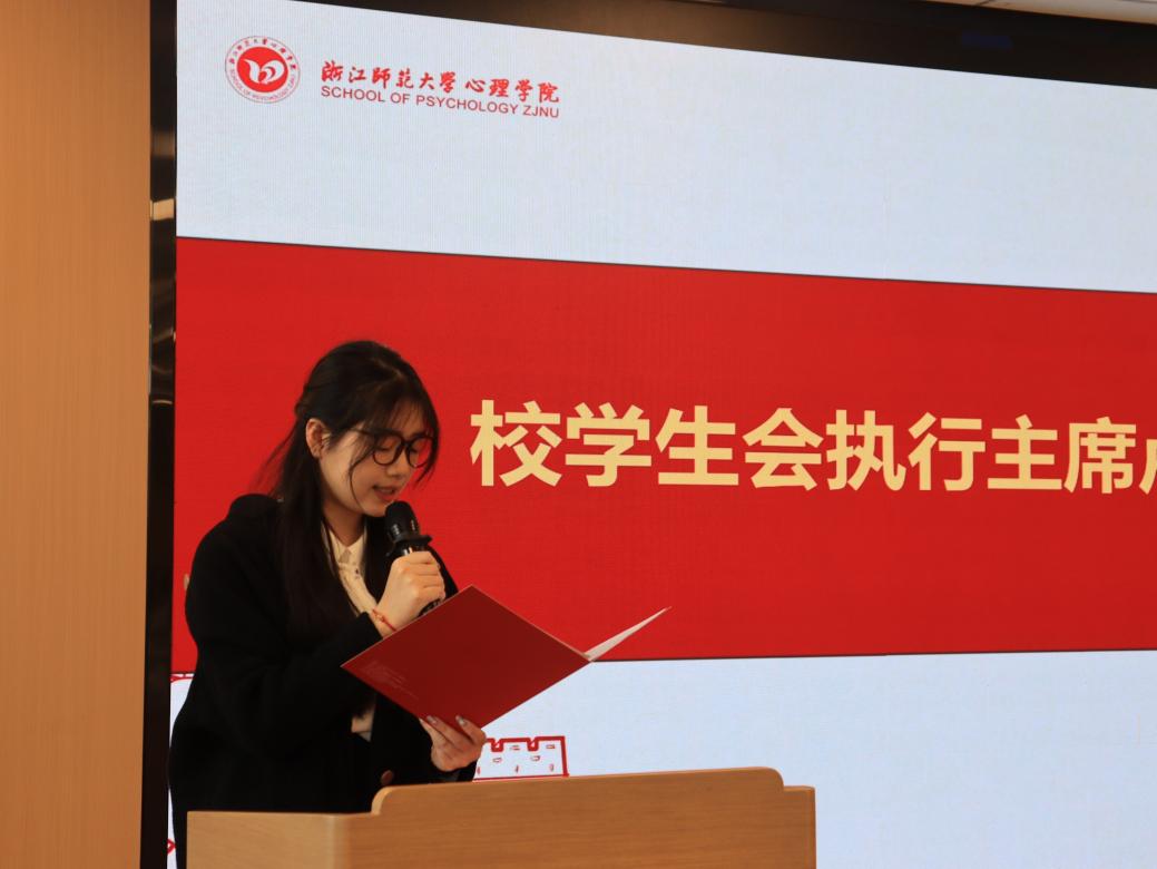 马莉书记代表学院党委发表讲话,她首先向关心和支持学院青年工作的各级组织致以敬意,并向辛勤付出的学生骨干表示感谢。她对全体同学提出四点期望:第一,坚定理想信念,做胸怀家国的奋斗者。希望同学们将个人发展的小我”融入民族复兴的“大我”,在服务国家心理健康战略的进程中实现人生价值。第二,勤学修德明辨,做知行合一的实干家。鼓励大家努力成长为又红又专、德才兼备的时代青年,以实干成就未来。第三,勇于改革创新,做追求卓越的排头兵。学生会、研究生会应成为同学们“想得起、找得到、靠得住”的坚强力量,持续助力同学成长成才。第四,强化服务意识,做同学们的贴心人。要始终牢记“全心全意为同学服务”的根本宗旨,携手营造和谐温馨、积极向上的学习生活环境。