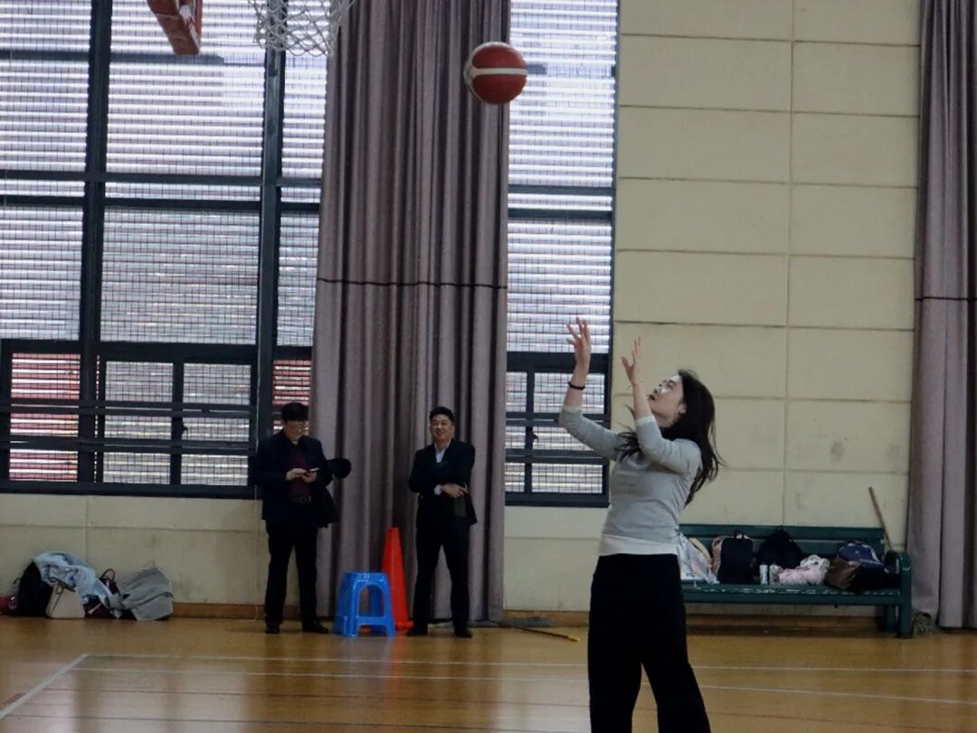 活动开始,学生队员们凭借出色的爆发力与灵敏性穿梭于障碍之间,引来阵阵赞叹;教师队员们则沉着稳健,以娴熟的控球技巧掌控节奏。无论是精准的跳投、流畅的上篮,还是初次尝试者的执着投掷,每记进球都赢得全场热烈的掌声。而每一次成功的传接,更是信任与默契的传递,将师生紧紧连结为一个整体。